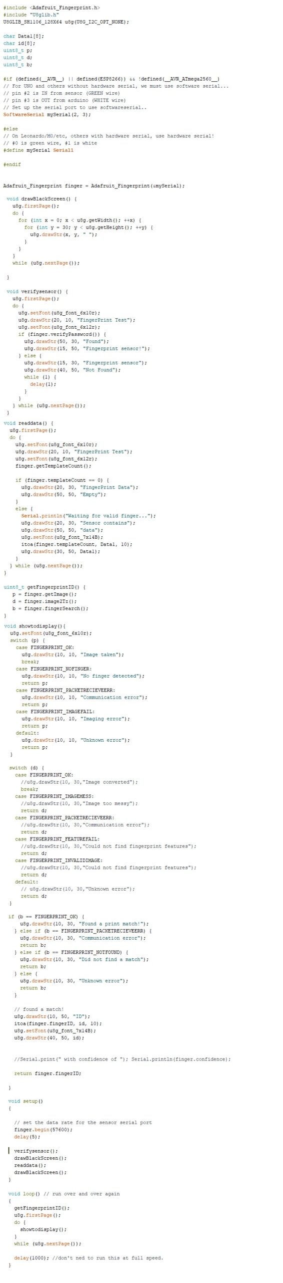 Jika kalian membutuhkan atau sedang membuat sistem sensor fingerprint dengan display, kalian bisa menggunakan referensi program di bawah ini. Program di bawah ini menggunakan arduino nano, sensor fingerprint, dan OLED 1.3 inch ya. Untuk jenis display lainnya kalian bisa modif sendiri programnya.
