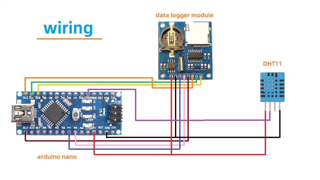 Pada tutorial ini kita akan mencoba membaca data dari sensor temperatur menggunakan sensor DHT11 dan menyimpan pembacaan data sensor tersebut ke dalam SD card dalam bentuk TXT file menggunakan modul data logger ini.